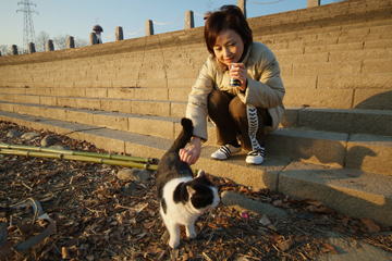 『現地ねこ』に触っています。 ゴロゴロのどを鳴らしています。 |