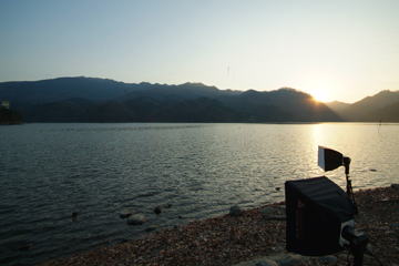 そろそろ太陽が沈み いよいよ撮影です。 |