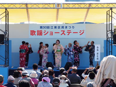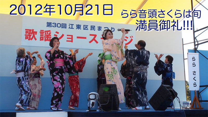 2012年10月21日 江東区民祭り歌謡ショーステージにて『らら音頭さくらは旬』が披露されました。 |