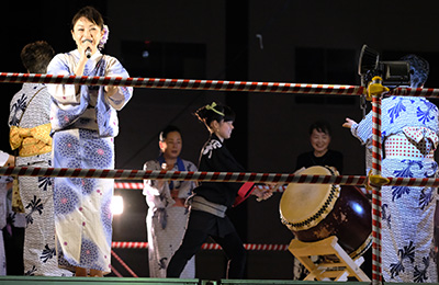 やぐらの上でらら音頭さくらは旬をおどりました♪。