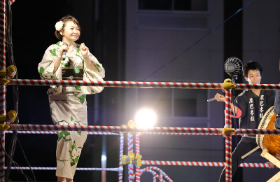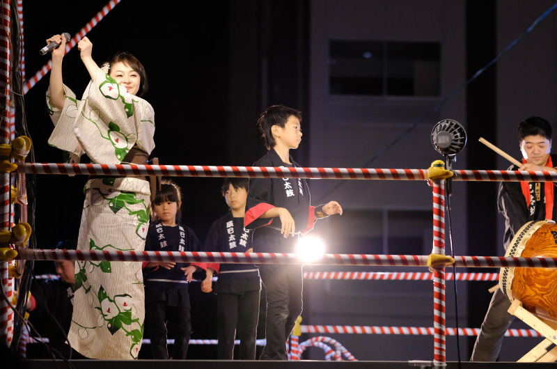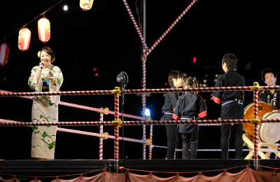 やぐらの上でらら音頭さくらは旬をおどりました♪。