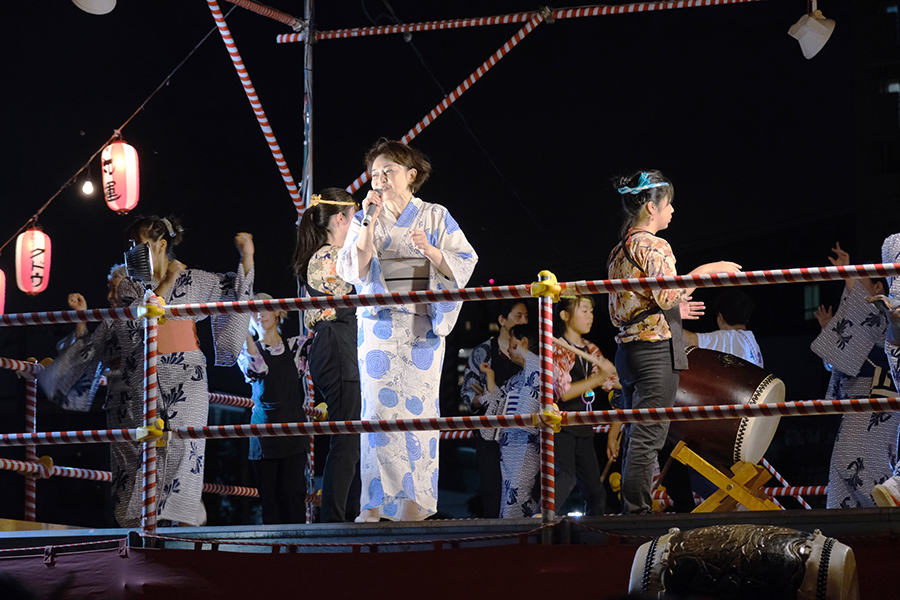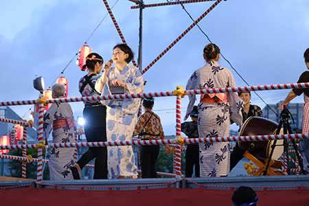やぐらの上でらら音頭さくらは旬をおどりました♪。