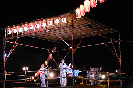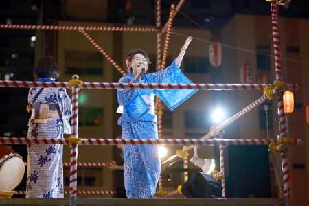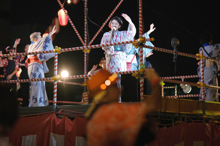 やぐらの上でらら音頭さくらは旬をおどりました♪。