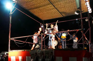 広くなったやぐらの上で皆さん らら音頭 をおどりました♪。 |