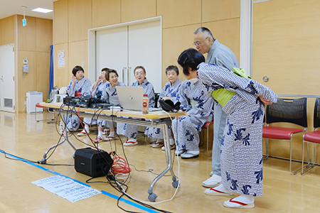 10月14日練習日、出演者の方々は自身の踊りを動画で確認しています。 |